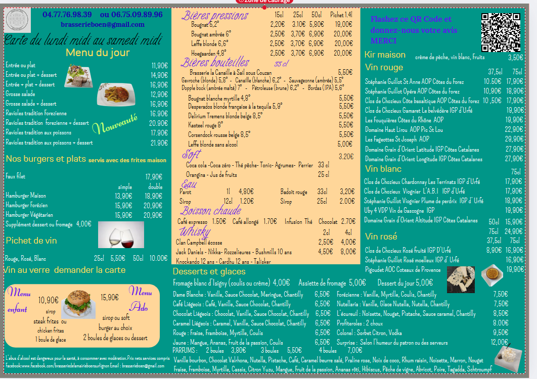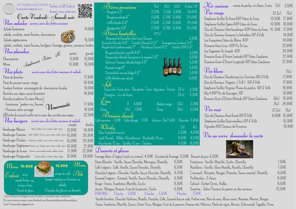 Les quelques petites nouveautés de cet été ont bien plu, nous les conservons, donc on continue avec les burgers le midi et nous rajoutons la pièce du boucher servie avec frites ou légumes du jour.
