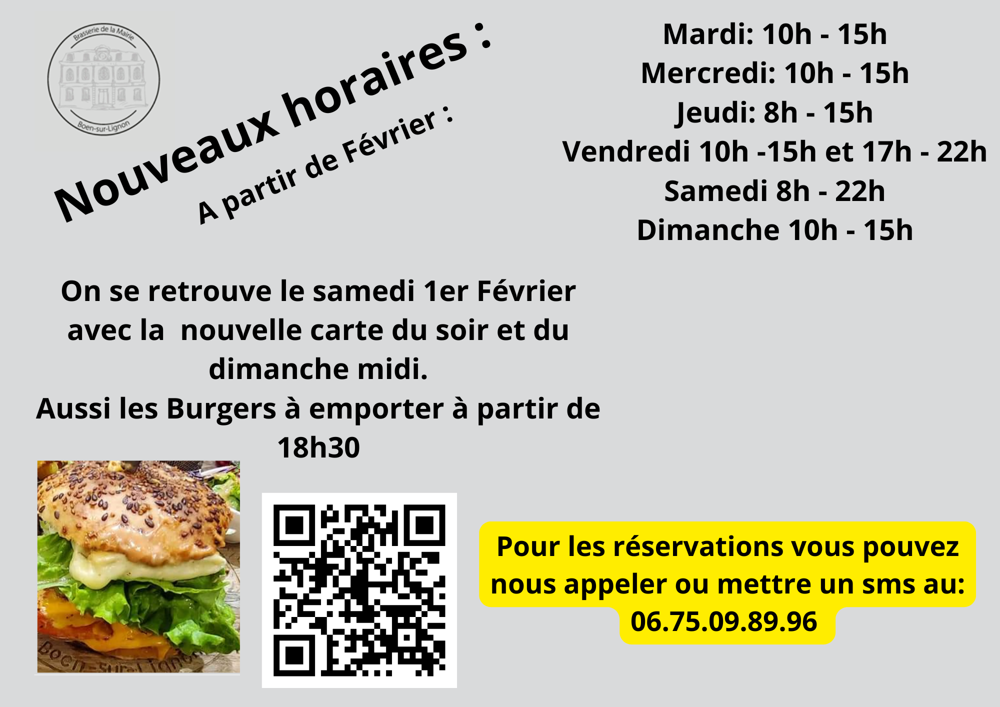Nous allons modifié nos horaires afin de mieux repartir avec les beaux jours à partir de mi avril , début mai selon le temps .